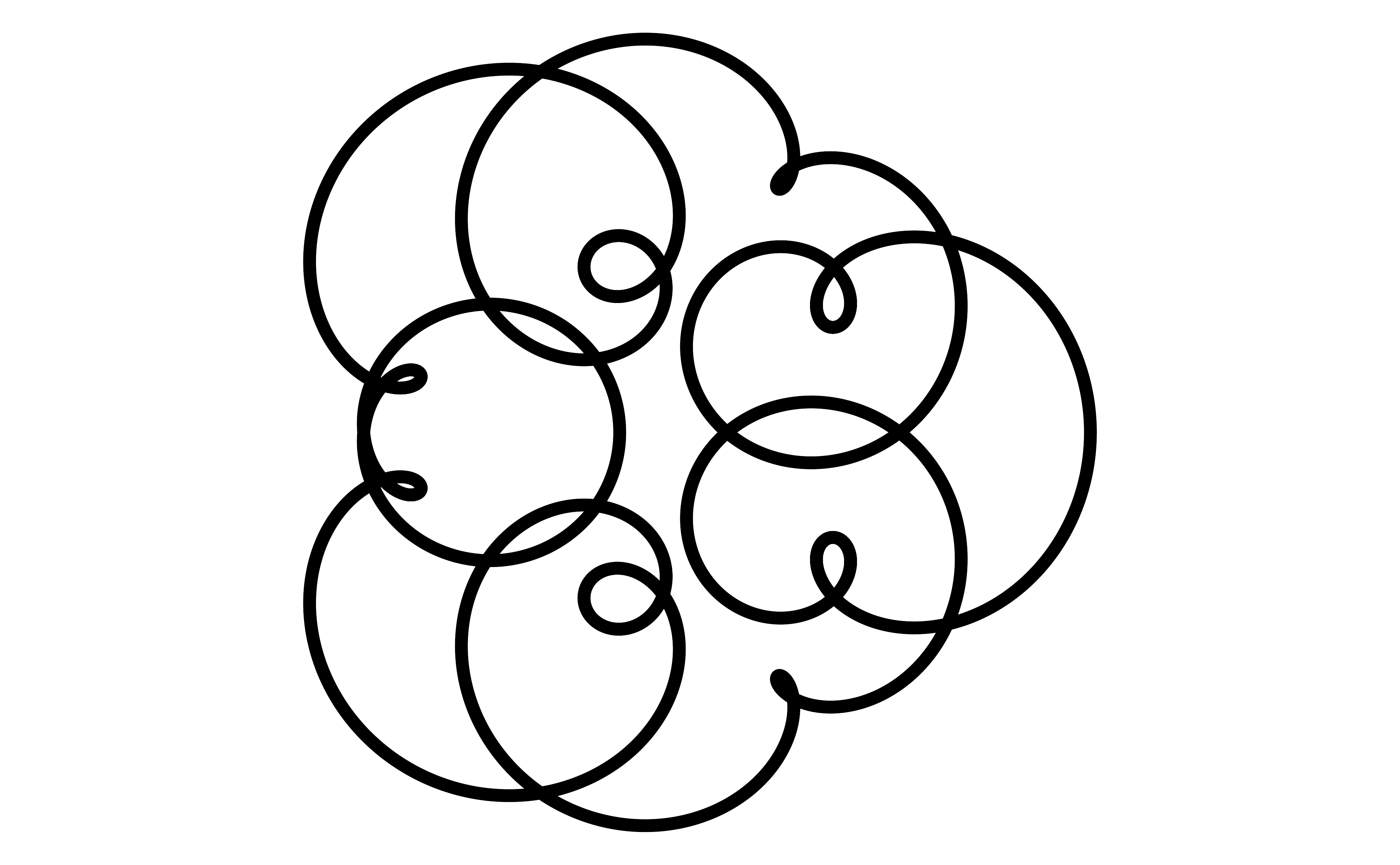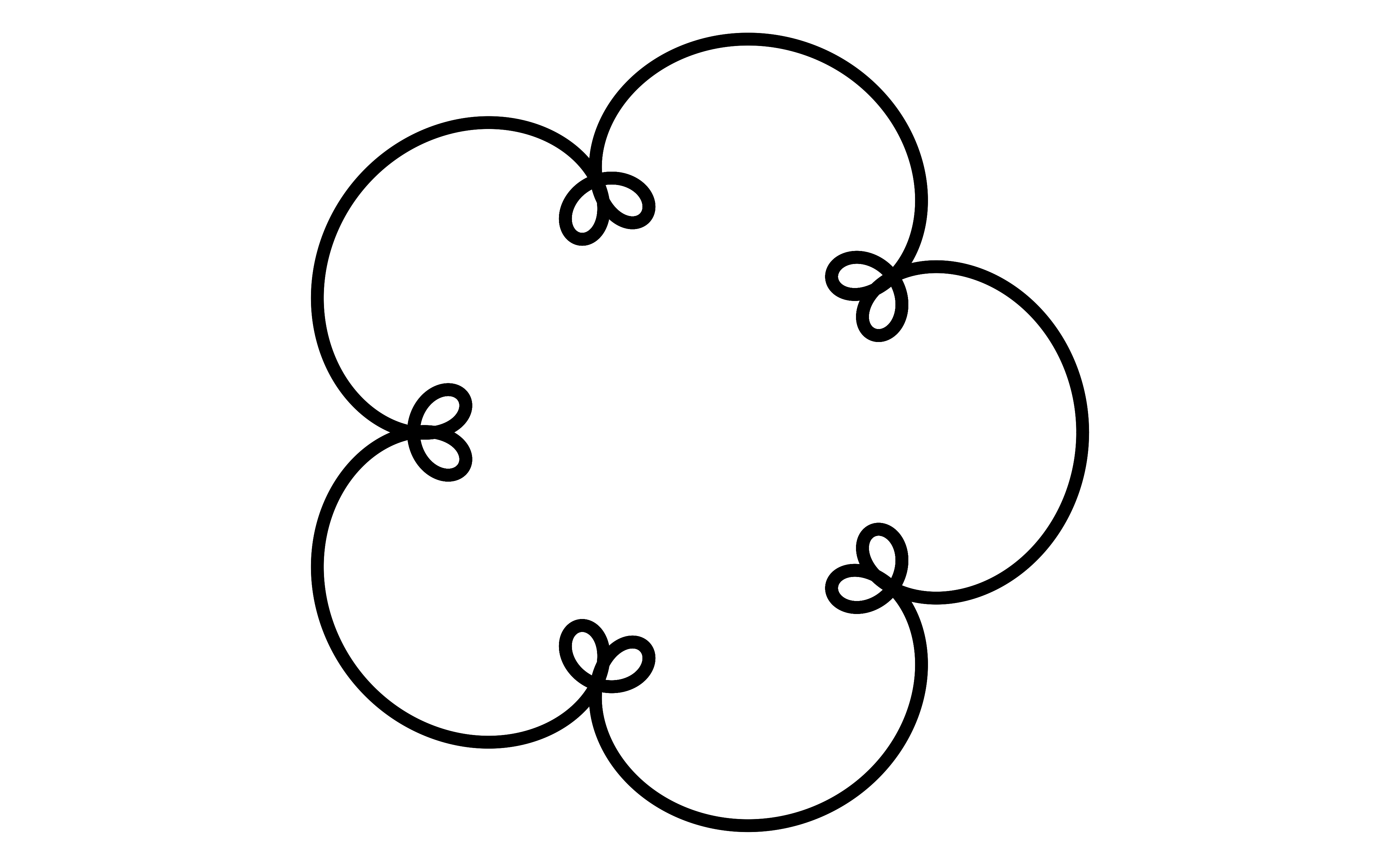 \[ \begin{eqnarray} x &= cos(t) + cos(6t)/2 + sin(14t)/3\\ y &= sin(t) + sin(6t)/2 + cos(14t)/3\\ \end{eqnarray} \]
